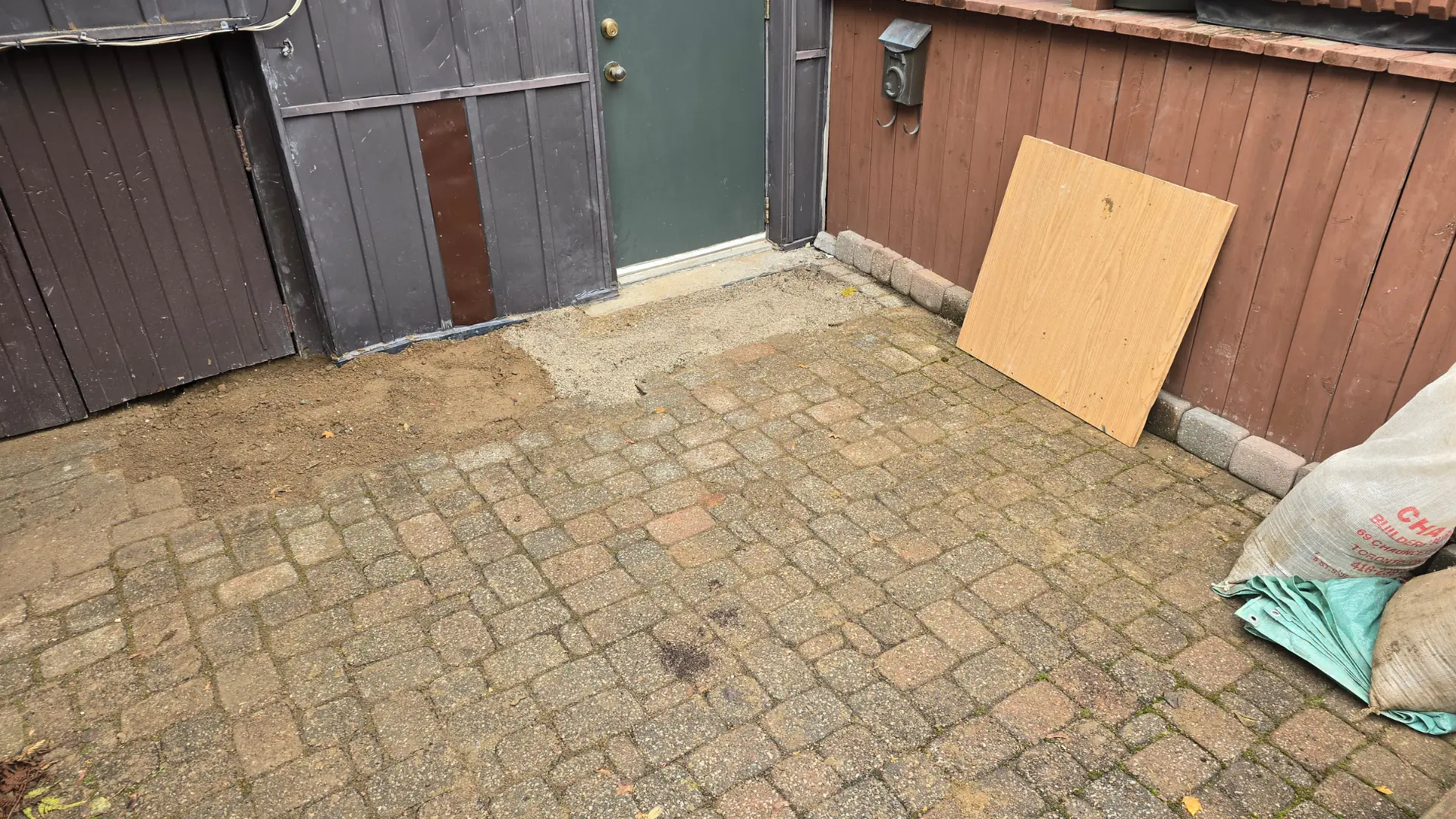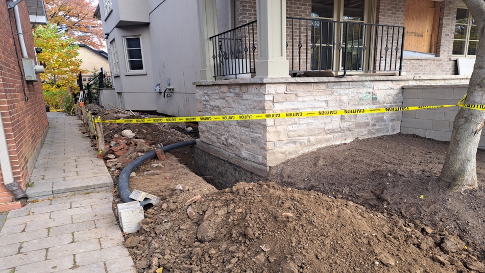 The client contacted The City Wide Group for concerns related to moisture and water infiltration along the basement foundation. An initial site assessment recommended 8 linear feet (LF) of exterior waterproofing, as well as the removal and later reinstallation of interlock once the soil has adequately settled.