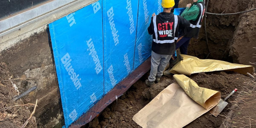 Scope: Approximately 324 linear feet of exterior waterproofing work at a depth of roughly 13 feet.
