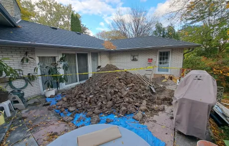 Exterior waterproofing was successfully completed at 36 Greenhill Dr, Thorold, ON. The initial scope of 10 LF was expanded after excavation revealed additional areas requiring waterproofing and drainage system improvement. The new BlueSkin WP200 and Delta MS installation, along with updated weeping tile and gravel system, provides effective long-term protection against water infiltration and foundation deterioration.