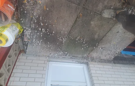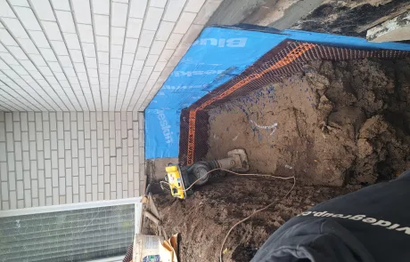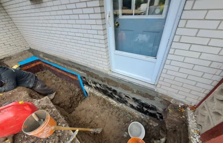 Removed existing weeping tile and installed new 4” perforated weeping tile, complete with filter fabric to prevent clogging.