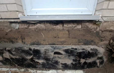 Necessary parging repairs completed to create a smooth and sealed surface in preparation for waterproofing.