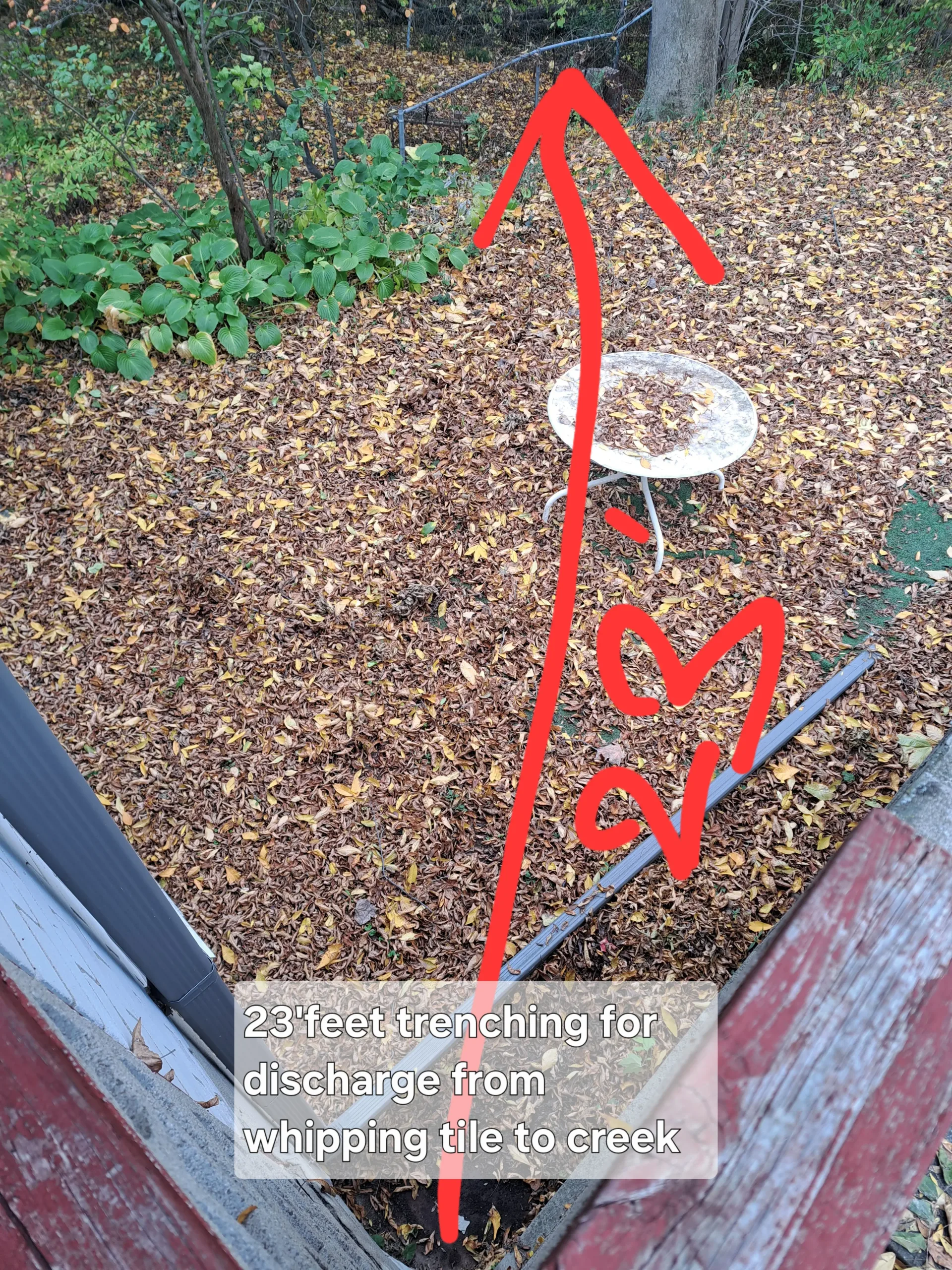 Surrounded weeping tile with clean ¾” gravel to improve drainage efficiency and direct water to designated discharge area.