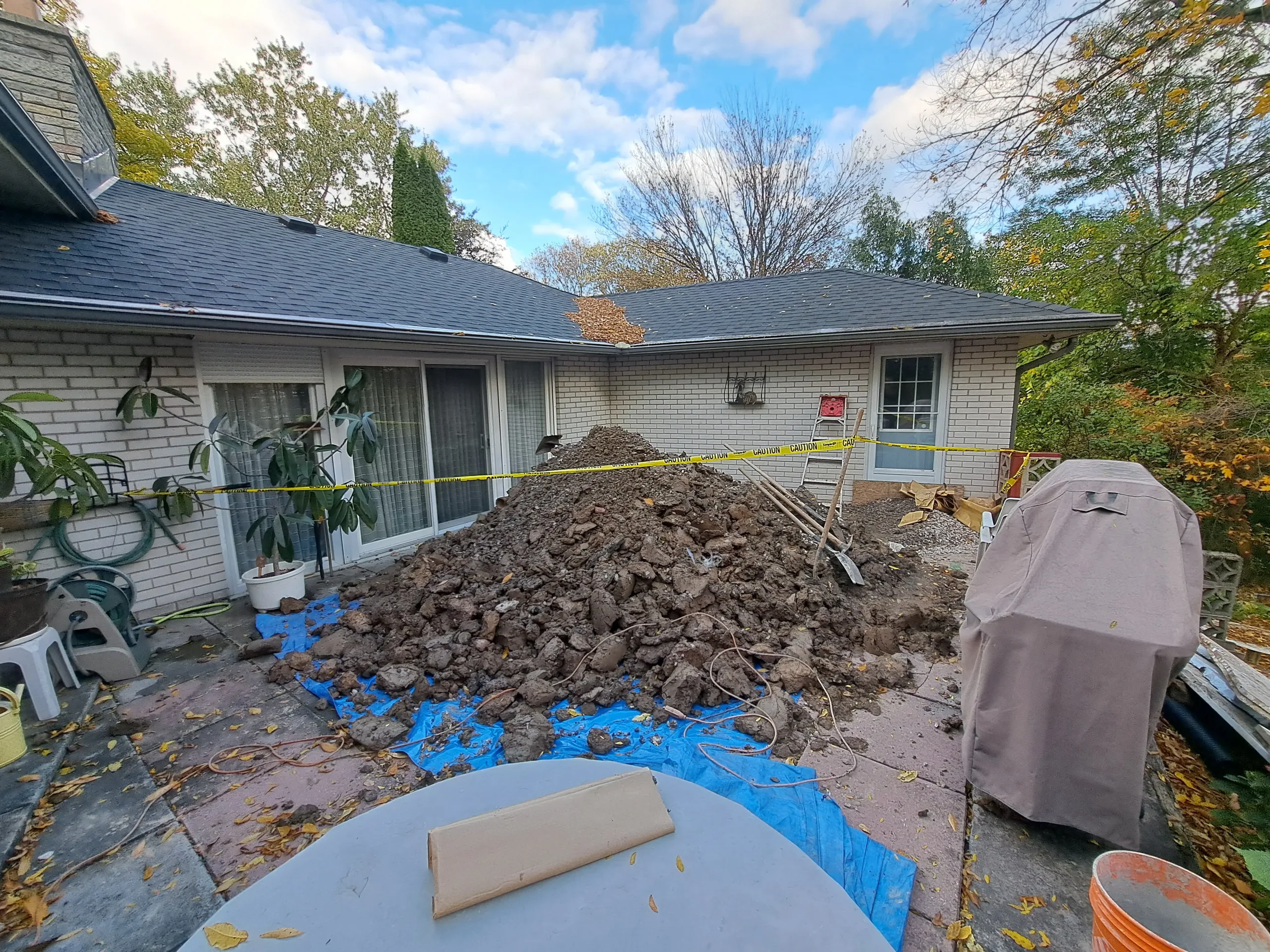 Exterior waterproofing was successfully completed at 36 Greenhill Dr, Thorold, ON. The initial scope of 10 LF was expanded after excavation revealed additional areas requiring waterproofing and drainage system improvement. The new BlueSkin WP200 and Delta MS installation, along with updated weeping tile and gravel system, provides effective long-term protection against water infiltration and foundation deterioration.