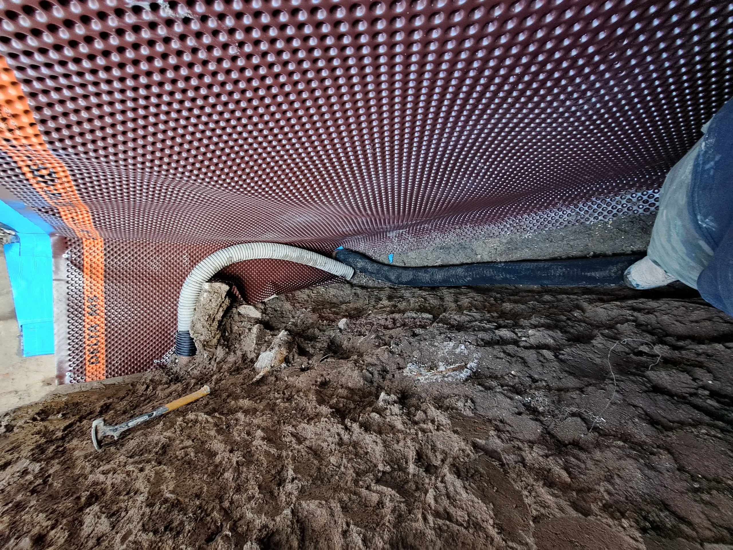 Installed Delta MS drainage board over the waterproofing membrane to protect the system and improve water management.