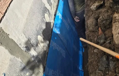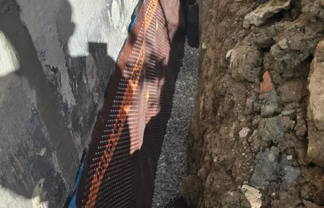 Installed drainage membrane (Delta MS) to promote proper drainage and protect the foundation from water damage.