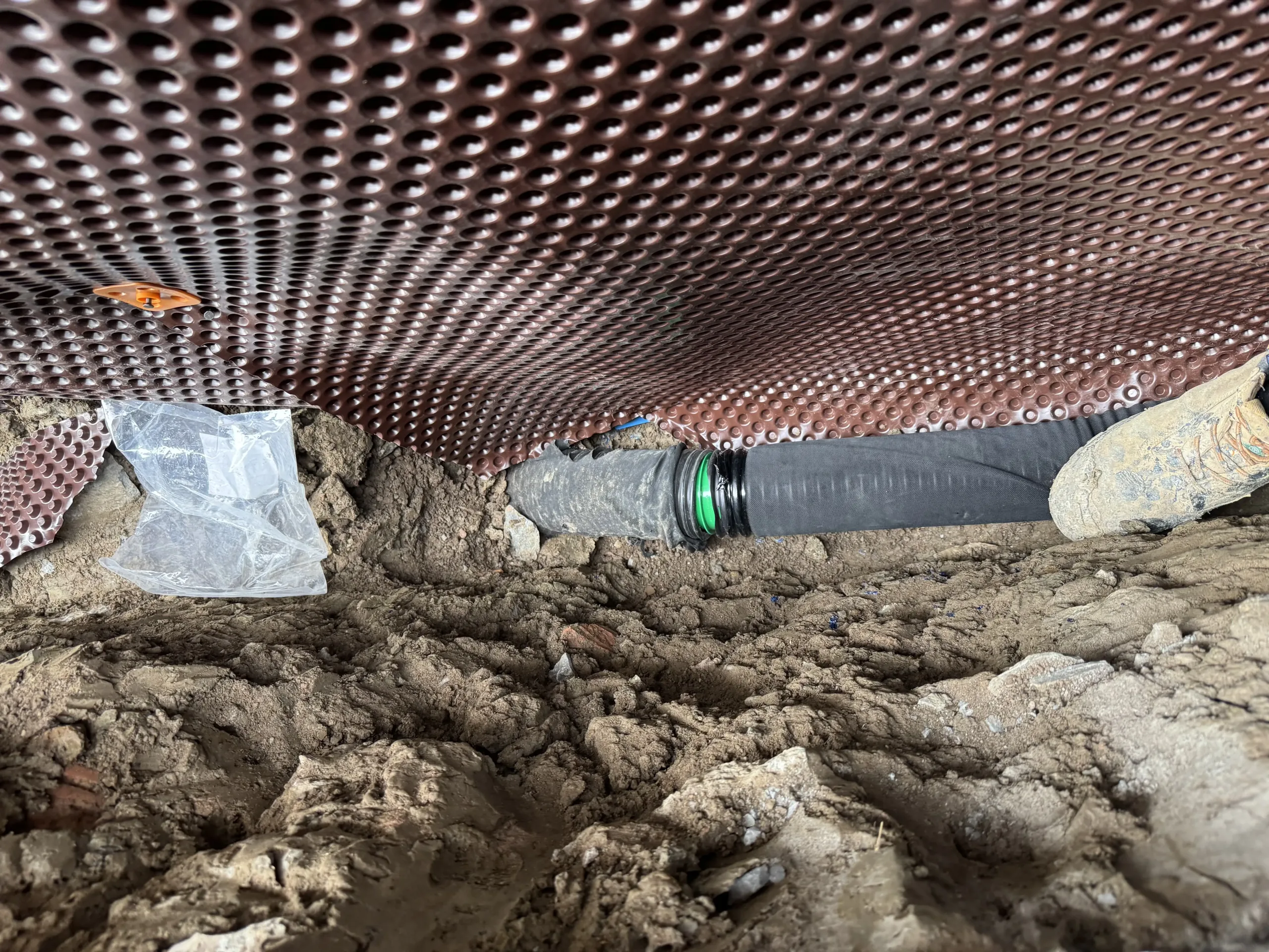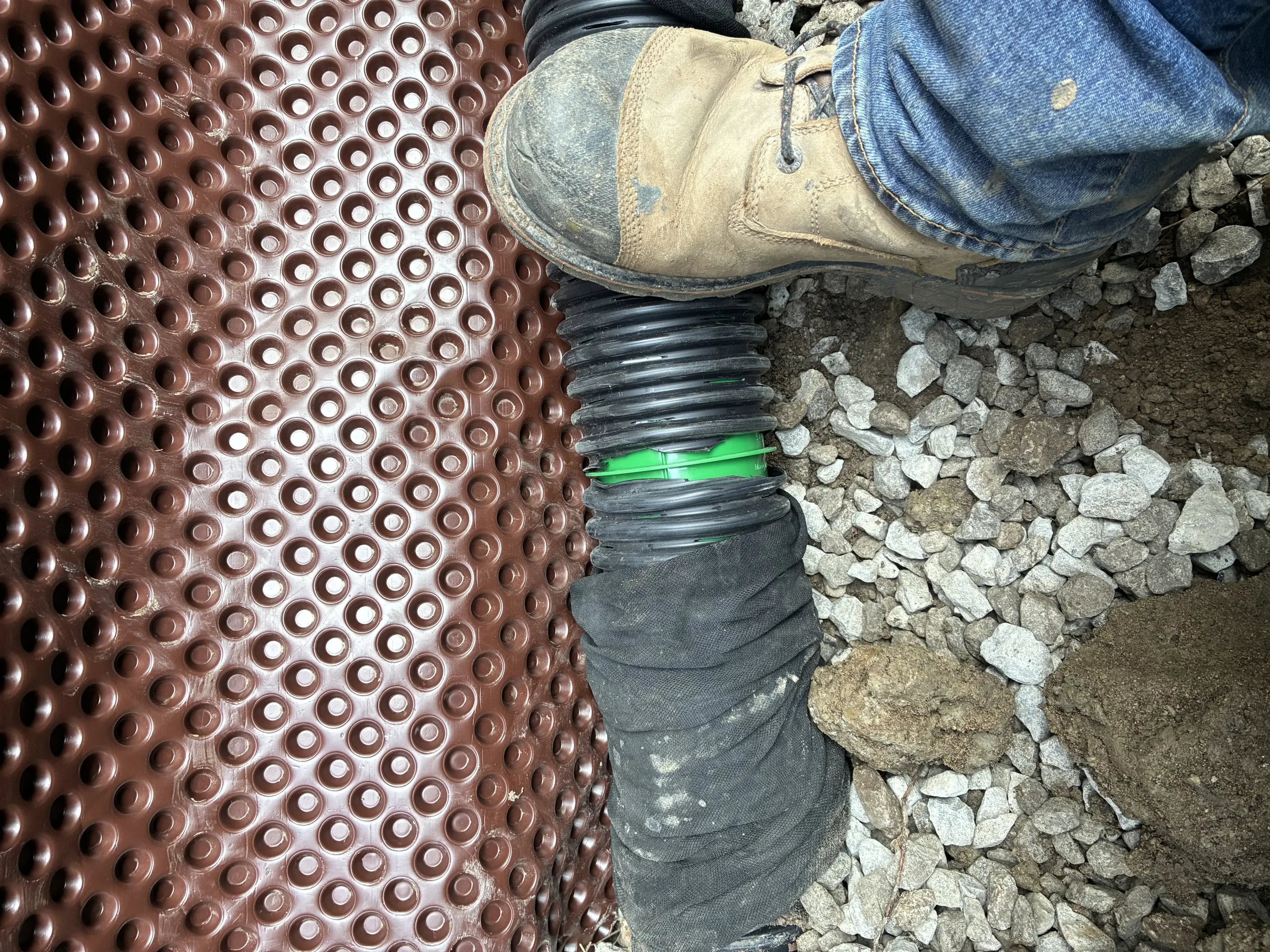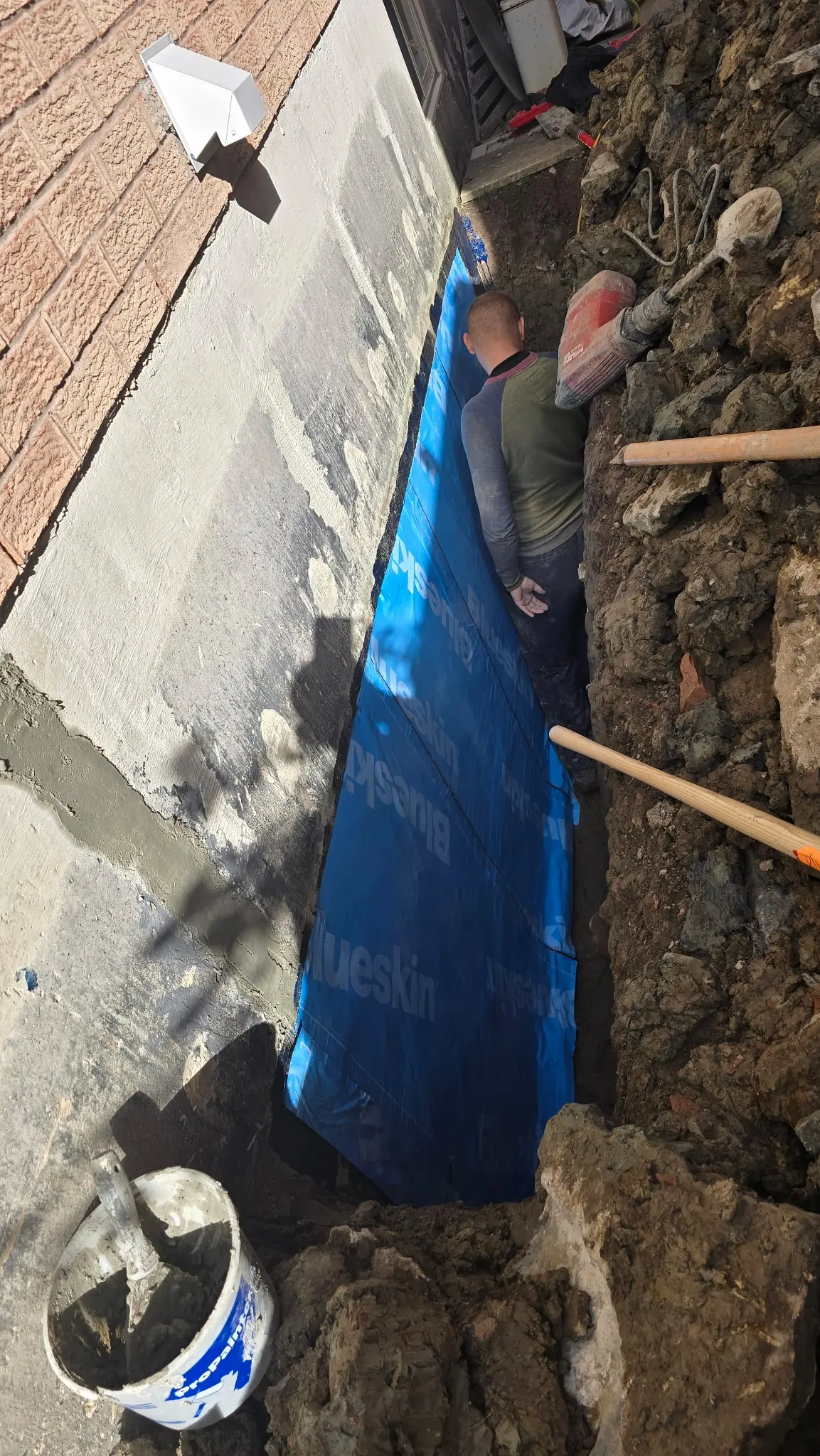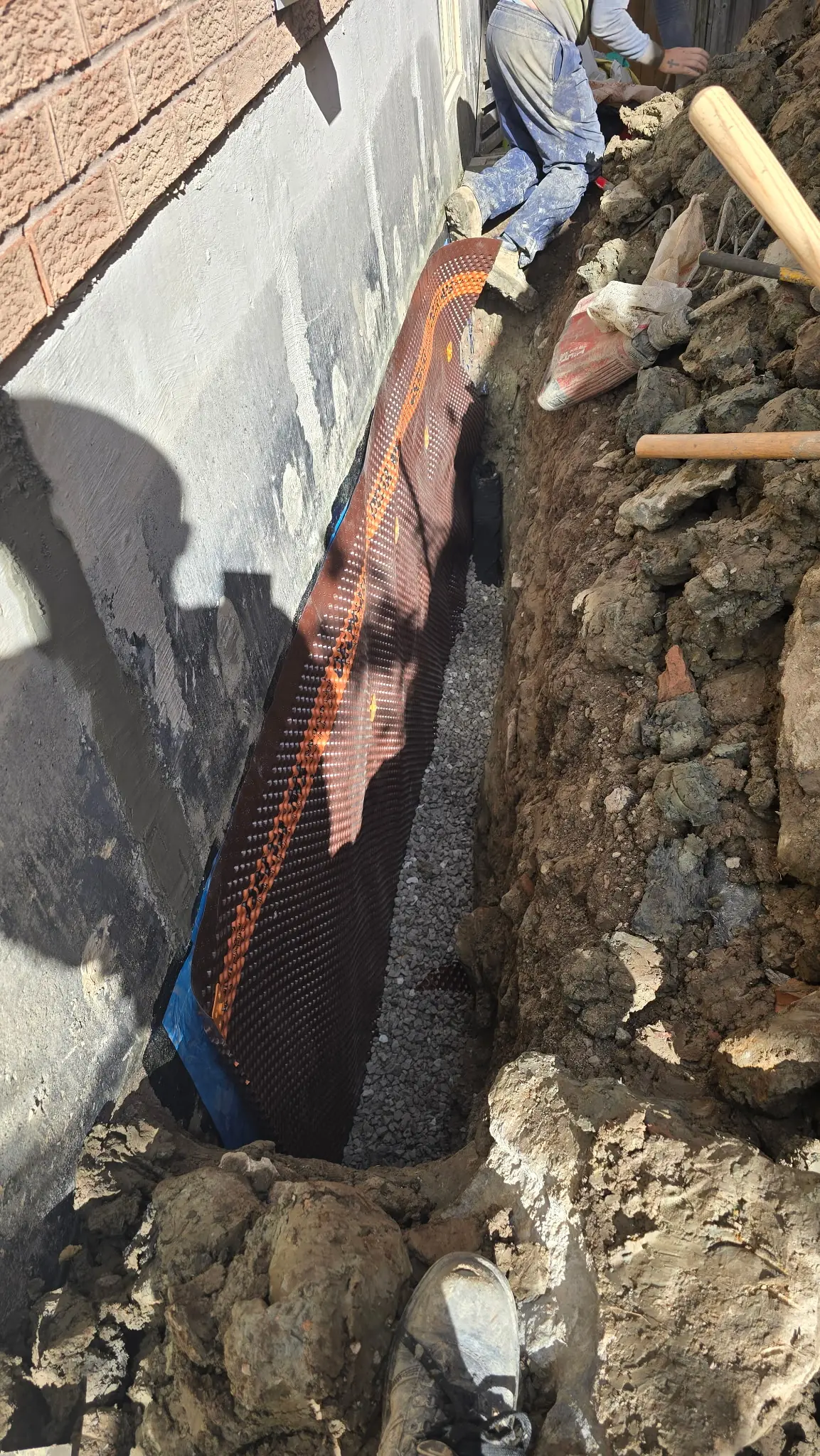 Installed drainage membrane (Delta MS) to promote proper drainage and protect the foundation from water damage.