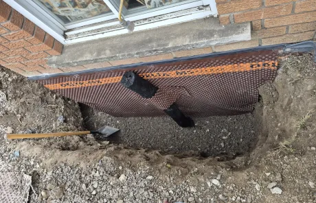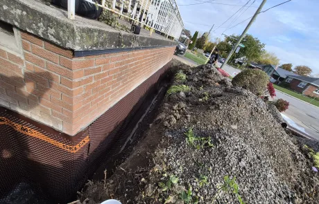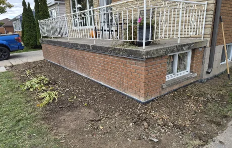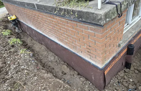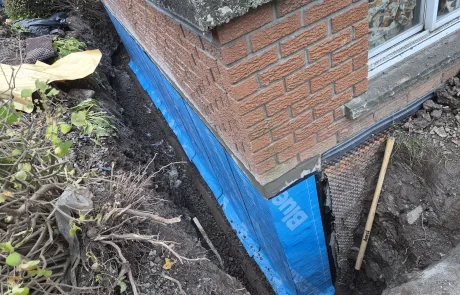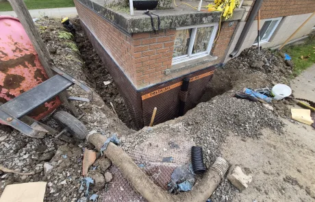 Exterior waterproofing was successfully completed at 423 Talbot St, Hamilton. The repairs addressed the damaged and compromised areas, replaced the defective membrane, and removed improperly placed fasteners. The newly installed BlueSkin WP200 and Delta MS system, along with the new weeping tile, ensures effective drainage and long-term protection of the foundation against water infiltration and structural damage.