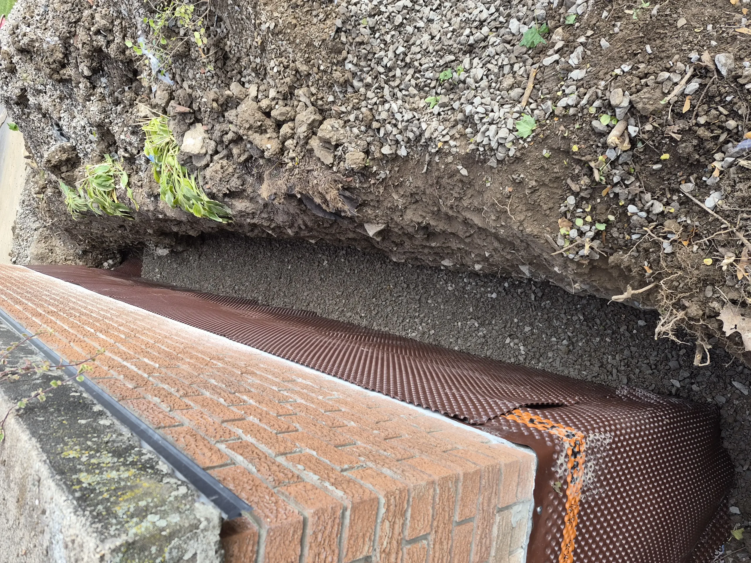 Installed a drainage membrane (Delta MS) over the surface to protect the waterproofing and promote vertical drainage.